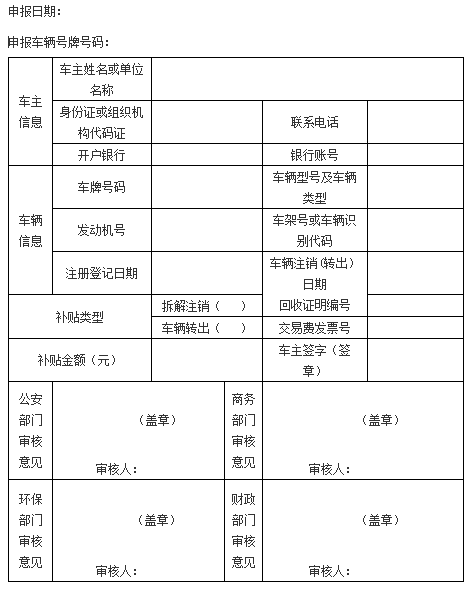 1.《 縣(市、區(qū))老舊車淘汰補(bǔ)貼資金申報(bào)表》;
